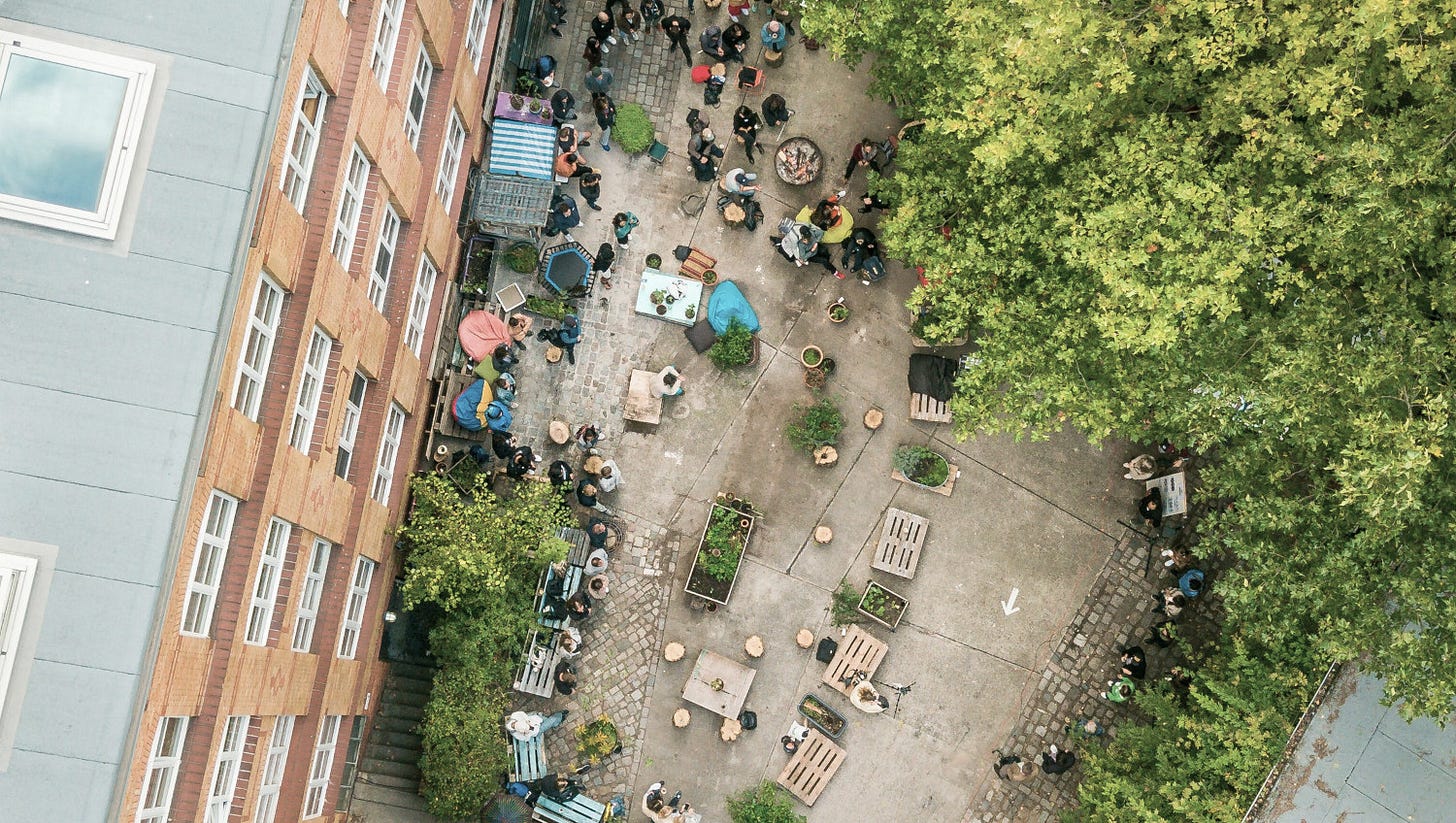 Last year, I spent eight months with an ambitious community building project in Berlin. We wanted to continue and expand the international community hub at the Moos, a beautiful old factory complex with a green courtyard that feels like a peaceful village square under a big plane tree.